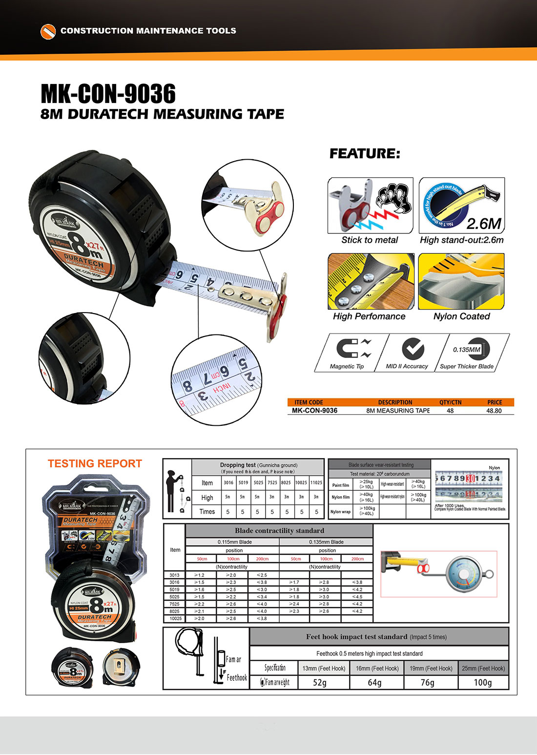 8M DURATECH MEASURING TAPE