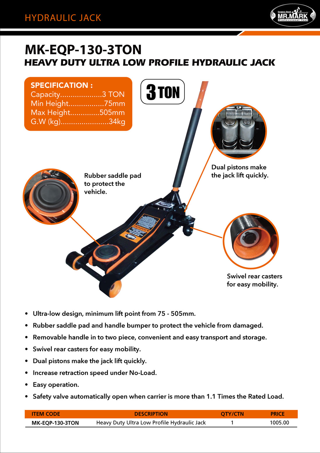 HEAVY DUTY ULTRA LOW PROFILE HYDRAULIC JACK