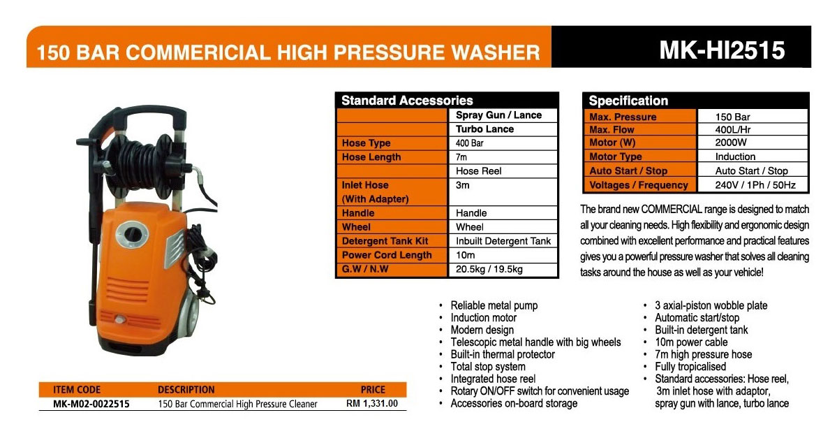 150 BAR COMMERCIAL HIGH PRESSURE WASHER