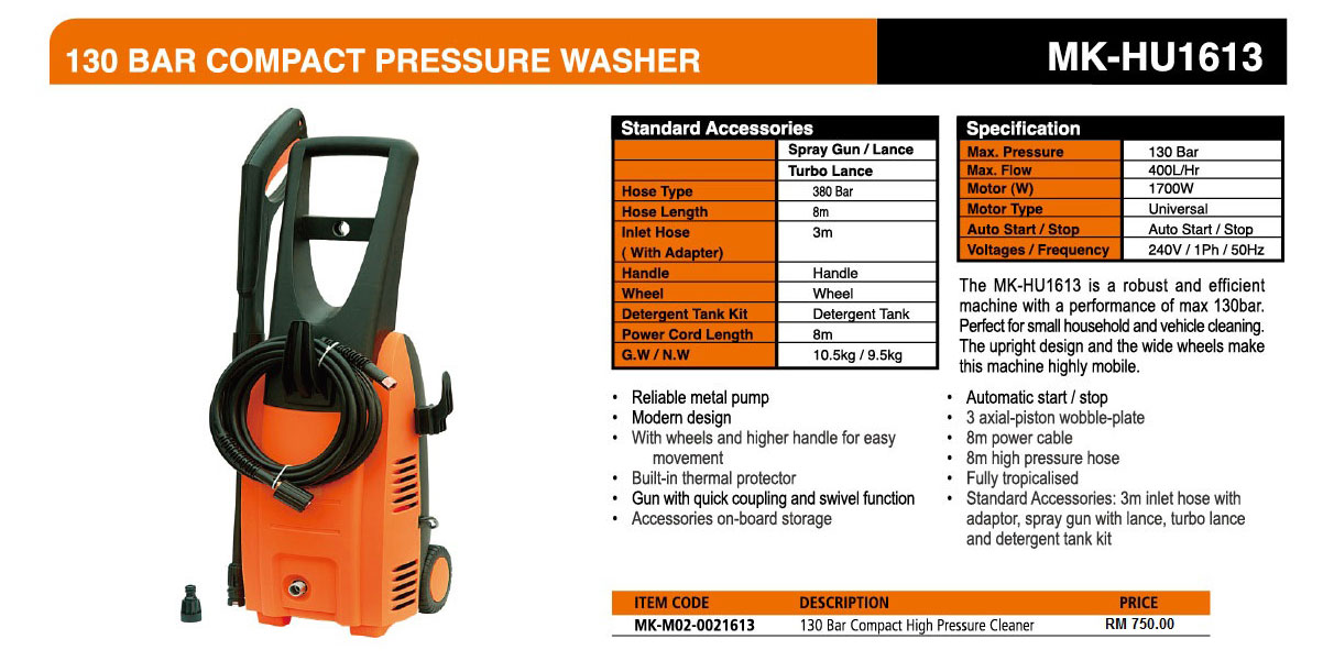 130 BAR COMPACT PRESSURE WASHER