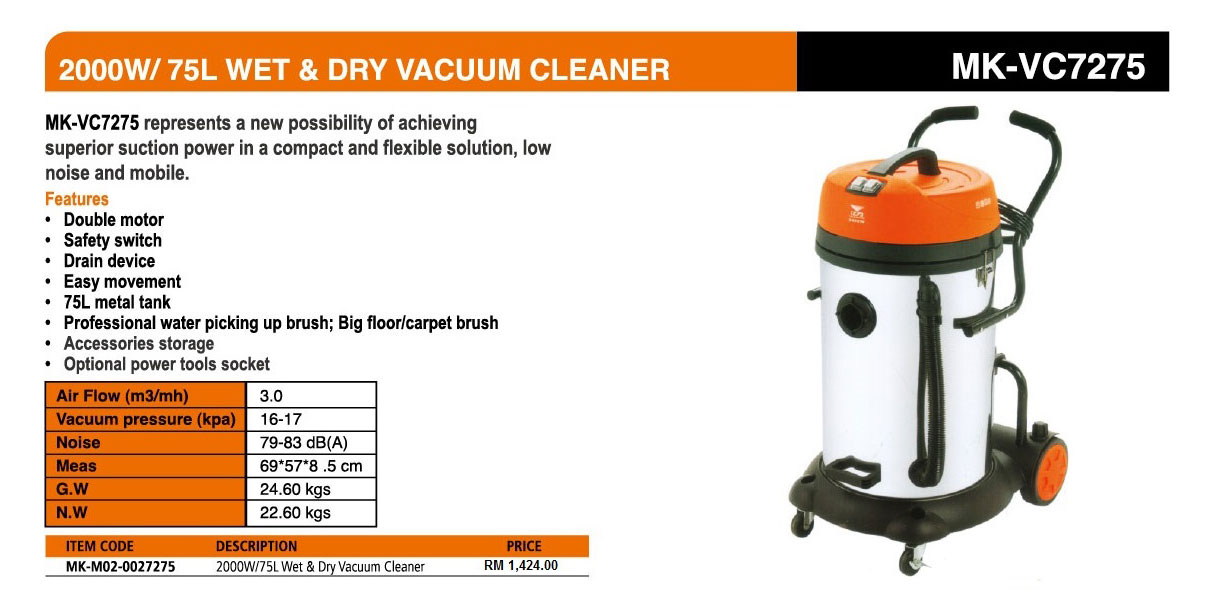 2000W/75L WET & DRY VACUUM CLEANER